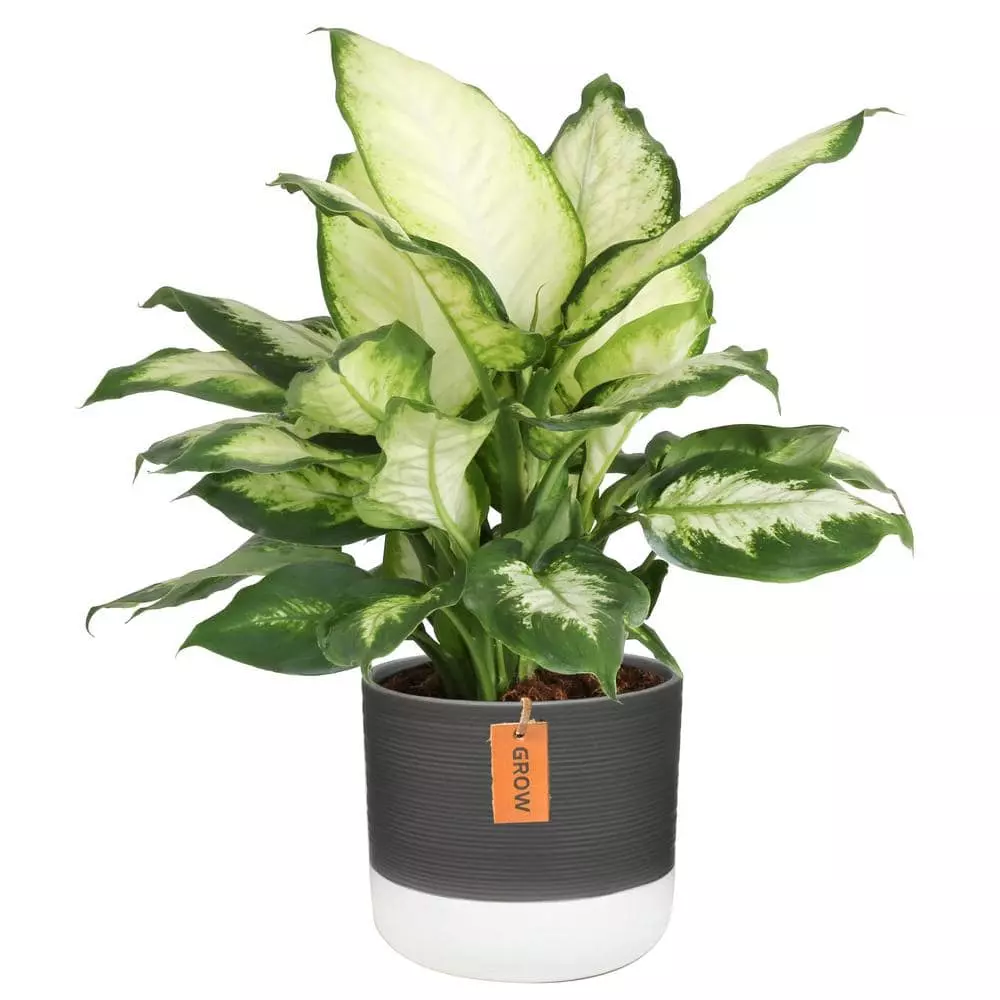 - Dieffenbachia, also known as dumb cane, is 1 of the easiest houseplants to grow, its green foliage has splashes of white throughout