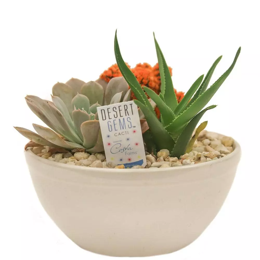 Enjoy no-fuss succulents with beautiful Desert Gems colorful cacti in this unique arrangement. Designed by experts at Costa Farms to act as a gorgeous living centerpiece or desktop dcor, these plants look great together and love the same growing conditions. All this arrangement needs is a spot in bright light and occasional watering. Fabulous to personalize your desk, window sill, or tabletop, it’ll look good for years with the right care. Shipped fresh and directly from our farm in Miami, you’ll love how it makes your indoor space look.