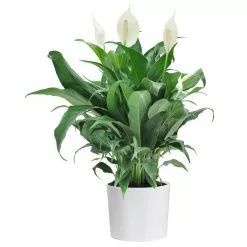 Enjoy white flowers atop dark green foliage with Spathiphyllum more commonly known as the Peace Lily. Spathiphyllum looks great with any interior decor. A houseplant classic, this is a favorite plant for homeowners looking for an easy to grow plant. The plant is native to the South American jungles so moist, humid conditions inside your home are best. Easy to grow plant with a big personality, Peace Lily is ideal houseplant for any home, apartment, or office. Peace Lily also makes a great housewarming gift. Everyone loves plants, especially ones that are so low maintenance! Because peace lily is one of the most efficient houseplants at filtering indoor pollutants from the air, it’s a great pick for bedrooms.