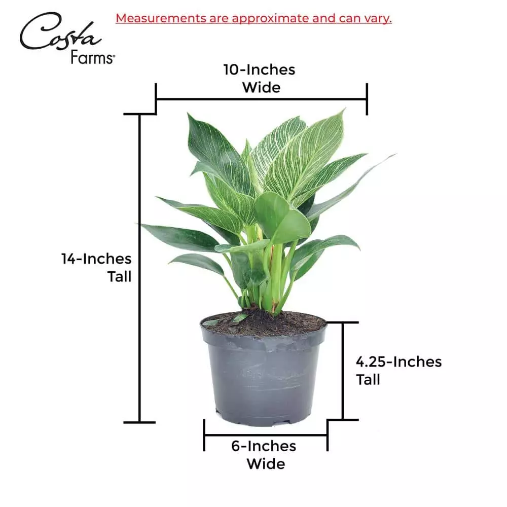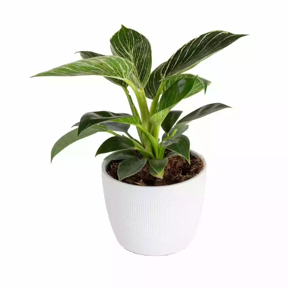 The Trending Tropicals Collection: Elevate your home decor with exceptional new varieties representing some of the hottest houseplant varieties on social media. This plant is great for small spaces and tabletops. It does well in offices, kitchens, dining rooms, living rooms, bedrooms, and outside on a patio. Birkin Philodendron is a relatively new houseplant. It has large, dark green leaves boldly streaked in creamy white. It’s a slow-growing, trendy variety perfect for any well-lit home or office. While its young, it’s a great addition to a tabletop or desk. It can mature that 3 ft. tall and wide. Place Philodendron Birkin in a spot that receives bright light (4 or more hours of sunlight. This plant prefers indirect sunlight. Direct sunlight may burn the plant. Water when the top 2 inches of the soil are dry (about once every 7 to 10 days) and be sure all excess water drains away. If the container does not have holes, use approximately 1 cup (for 6in diameter container) of water, adjust as needed for your environment. Do not let the plant sit in water or overly soggy soil.
