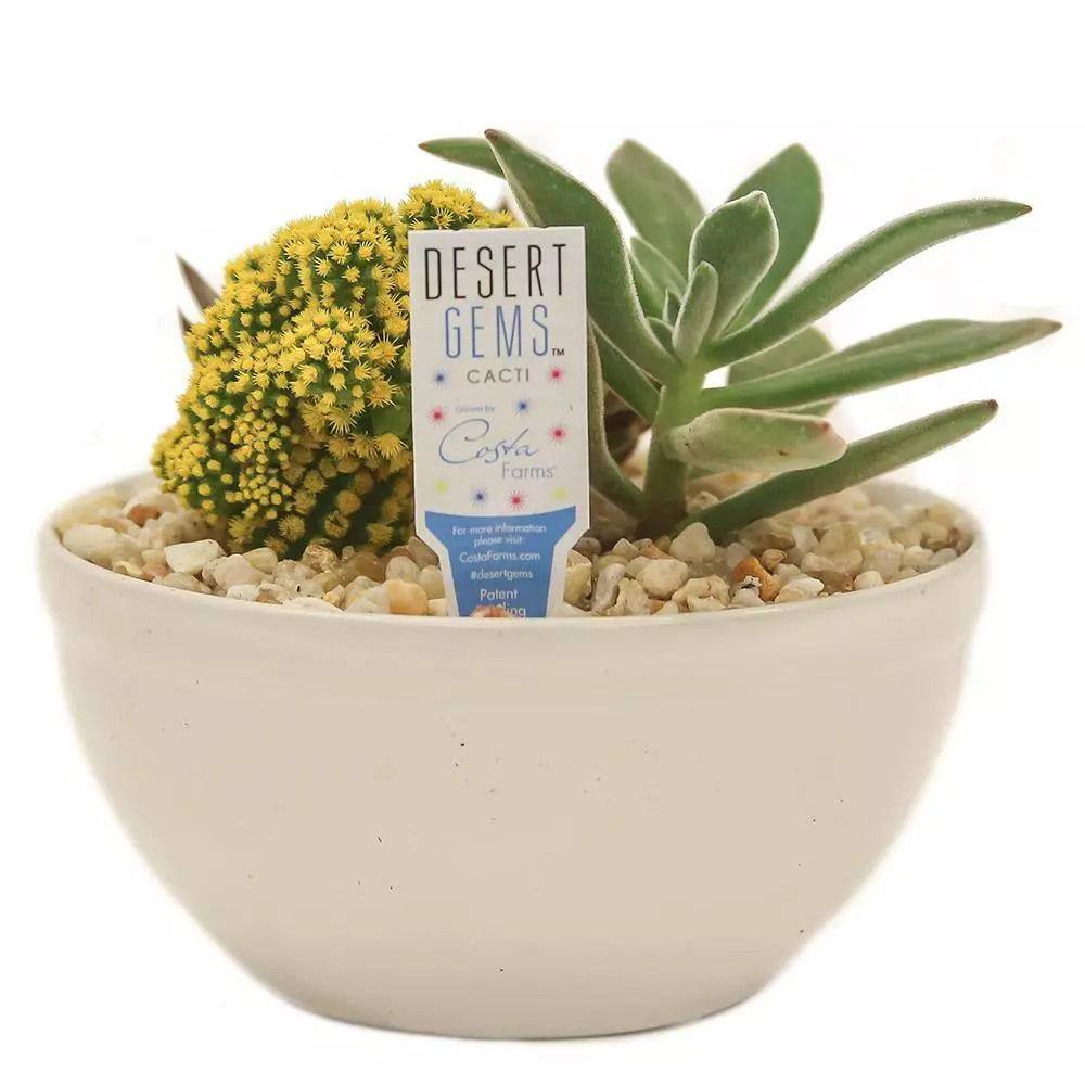Enjoy no-fuss succulents with beautiful Desert Gems colorful cacti in this unique arrangement. Designed by experts at Costa Farms to act as a gorgeous living centerpiece or desktop dcor, these plants look great together and love the same growing conditions. All this arrangement needs is a spot in bright light and occasional watering. Fabulous to personalize your desk, window sill, or tabletop, it’ll look good for years with the right care. Shipped fresh and directly from our farm in Miami, you’ll love how it makes your indoor space look.