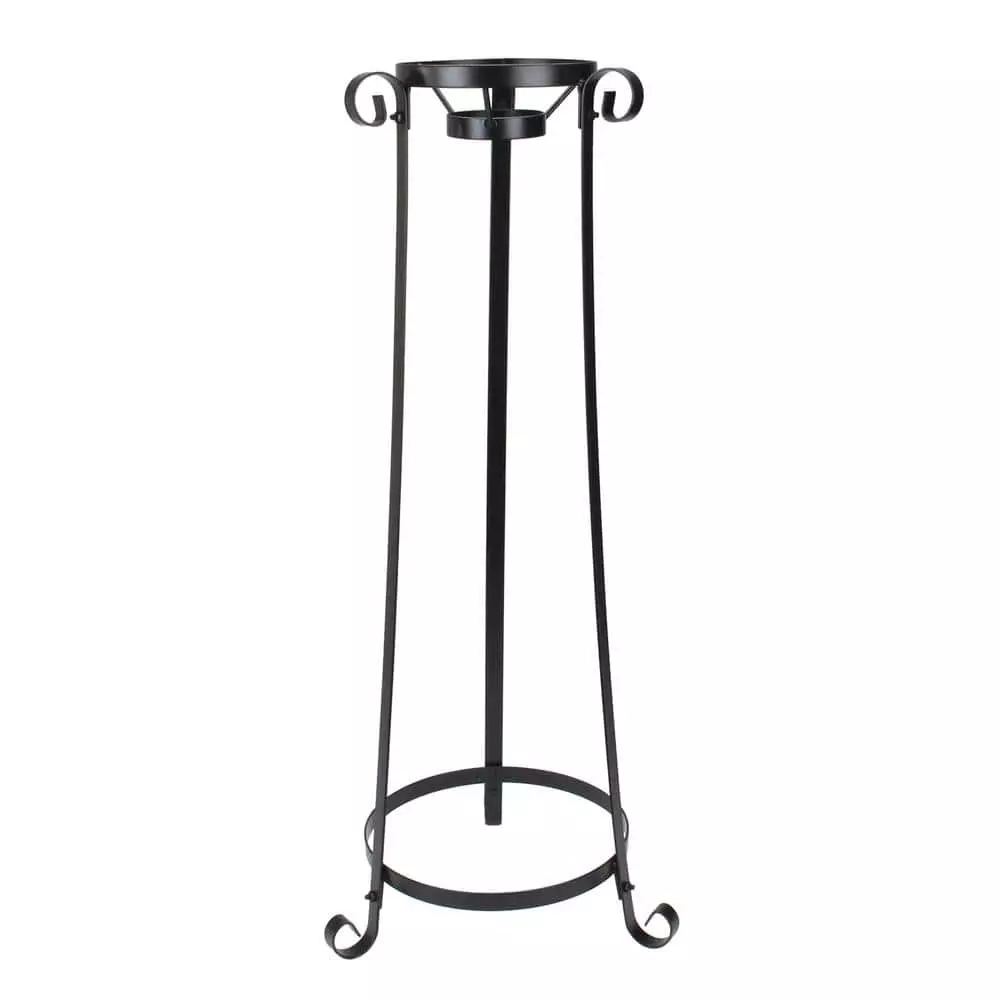 Thought to attract fairies and magical beings gazing balls have been making gardens beautiful since the 13th century. This lovely stand is the perfect way to display your colorful gazing balls. This versatile piece will match any garden decor. Product Features: Swirled design on legs. 3 sturdy legs are sure to keep your gazing balls secure. Black finish goes with any decor. String lights for an added touch of flair. Gazing ball not included. For indoor and outdoor use. Dimensions: 24 in. H x 7.75 in. W x 2.25 in. D. Material(s): metal.