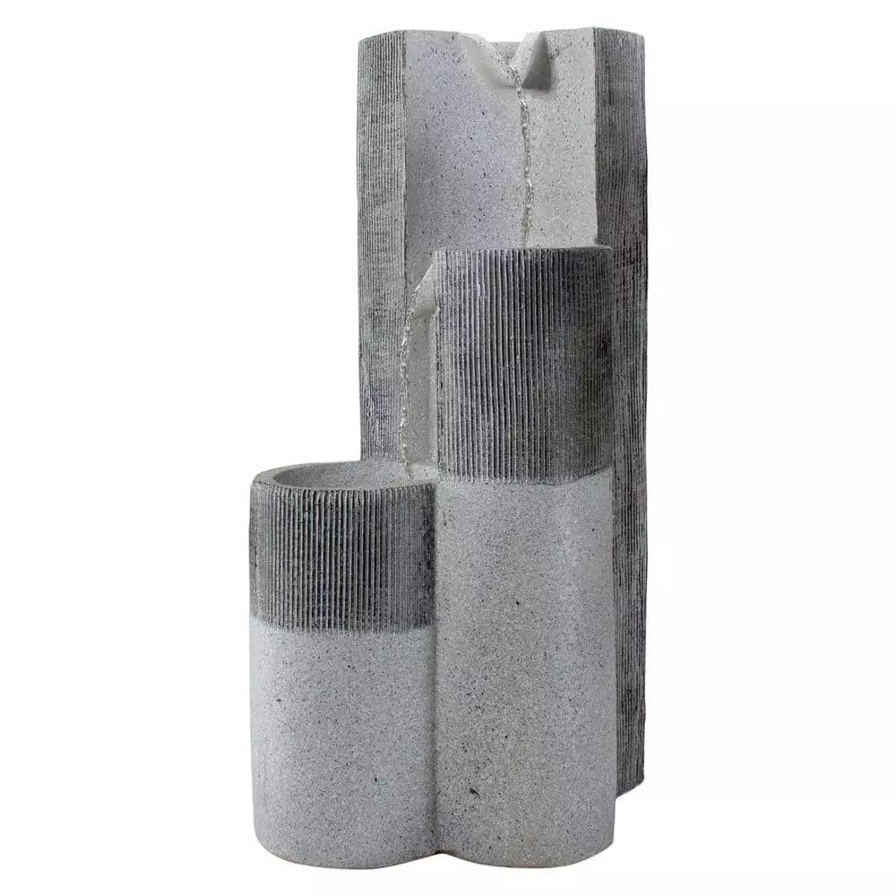 This contemporary-style water fountain provides a tranquil and soothing addition to your indoor or outdoor living areas. It features a speckled and striped textured design. Featuring 3 tiers to create a rainfall effect. Relax to the sounds of the soft natural water flow as it trickles down through the fountain. Truly a unique water feature this piece is richly detailed and sure to be the topic of conversation. Product features: Self-sustaining rainfall style fountain with 3-tiers. Textured lines accent the speckled gray and black design. Constantly recycles the same water. Constructed from durable polystone. Some assembly required. 12-Volt 60 hertz 0.07 amp submersible pump. UL certified and approved for indoor or outdoor use. Dimensions: 24 in. H x 13 in. L x 9.25 in. W. Material(s): polystone.